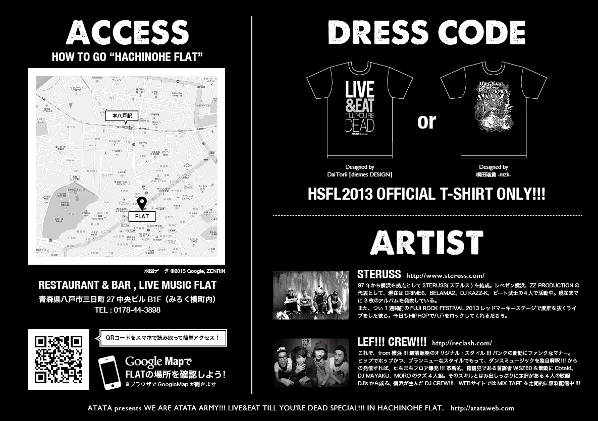 本日、8/3(土)の午後11時から八戸のライブハウスFLATにて、完全無料のイベント『WE ARE ATATA ARMY!!!』を行います!